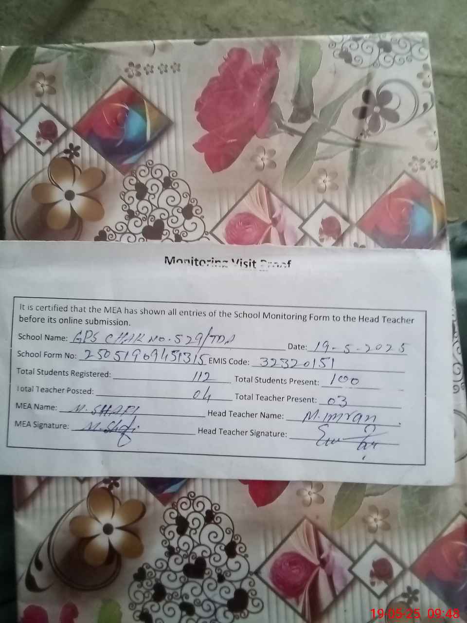 | EMIS Code: 32320151 | Name of School: GPS CHAK NO. 529/TDA | |||