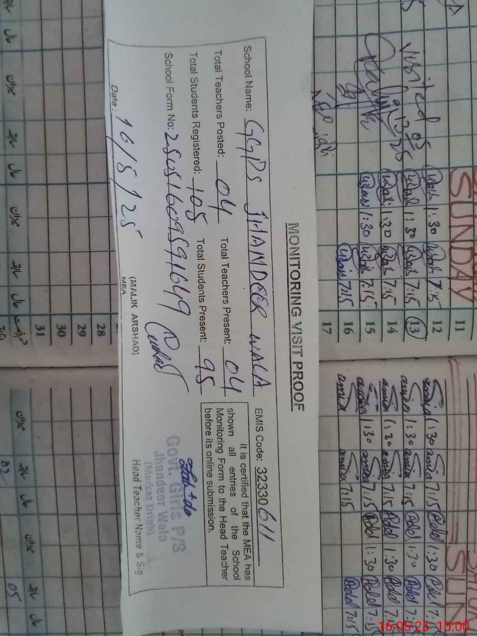 | EMIS Code: 32330611 | Name of School: GGPS JHANDEER WALA | |||