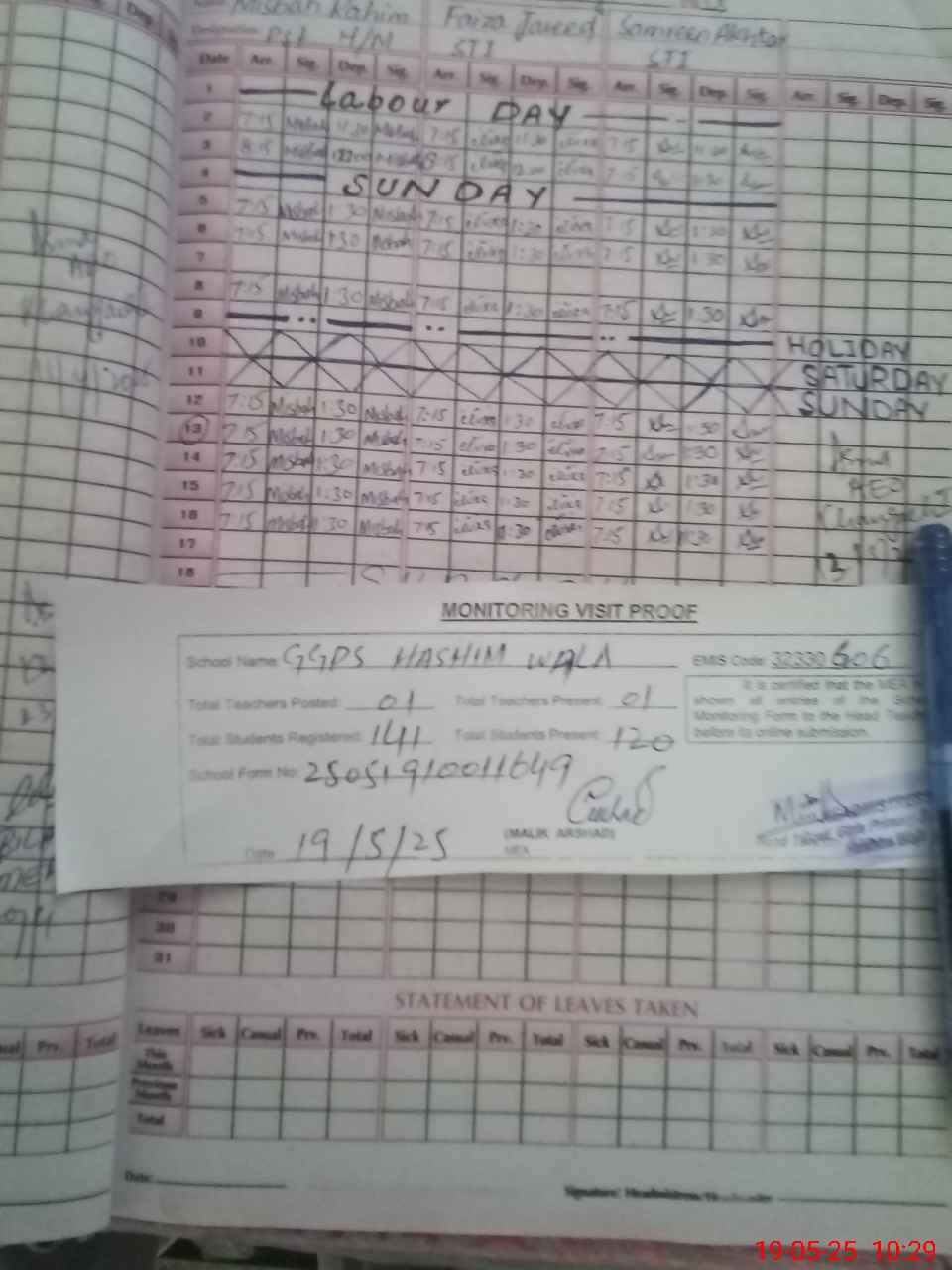 | EMIS Code: 32330606 | Name of School: GGPS HASHIM WALA | |||