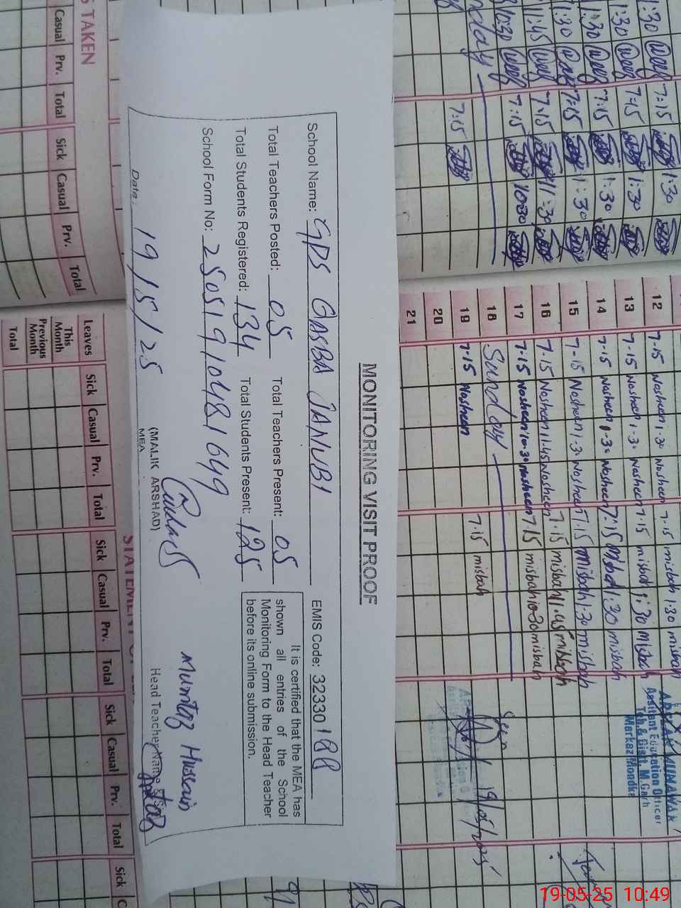 | Attendance Register | Head Teacher | MEA with School | Visit Proof |