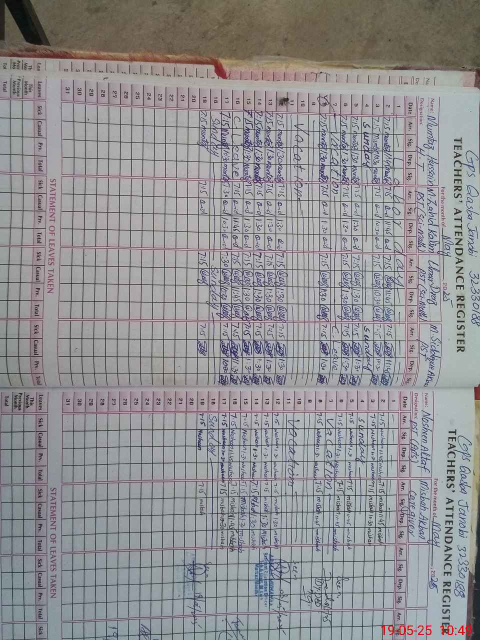 | Name: Mu**** Hu**** Designation: (School Headmaster's/Headmistress's) PST Phone/Cell Number: 03**** |