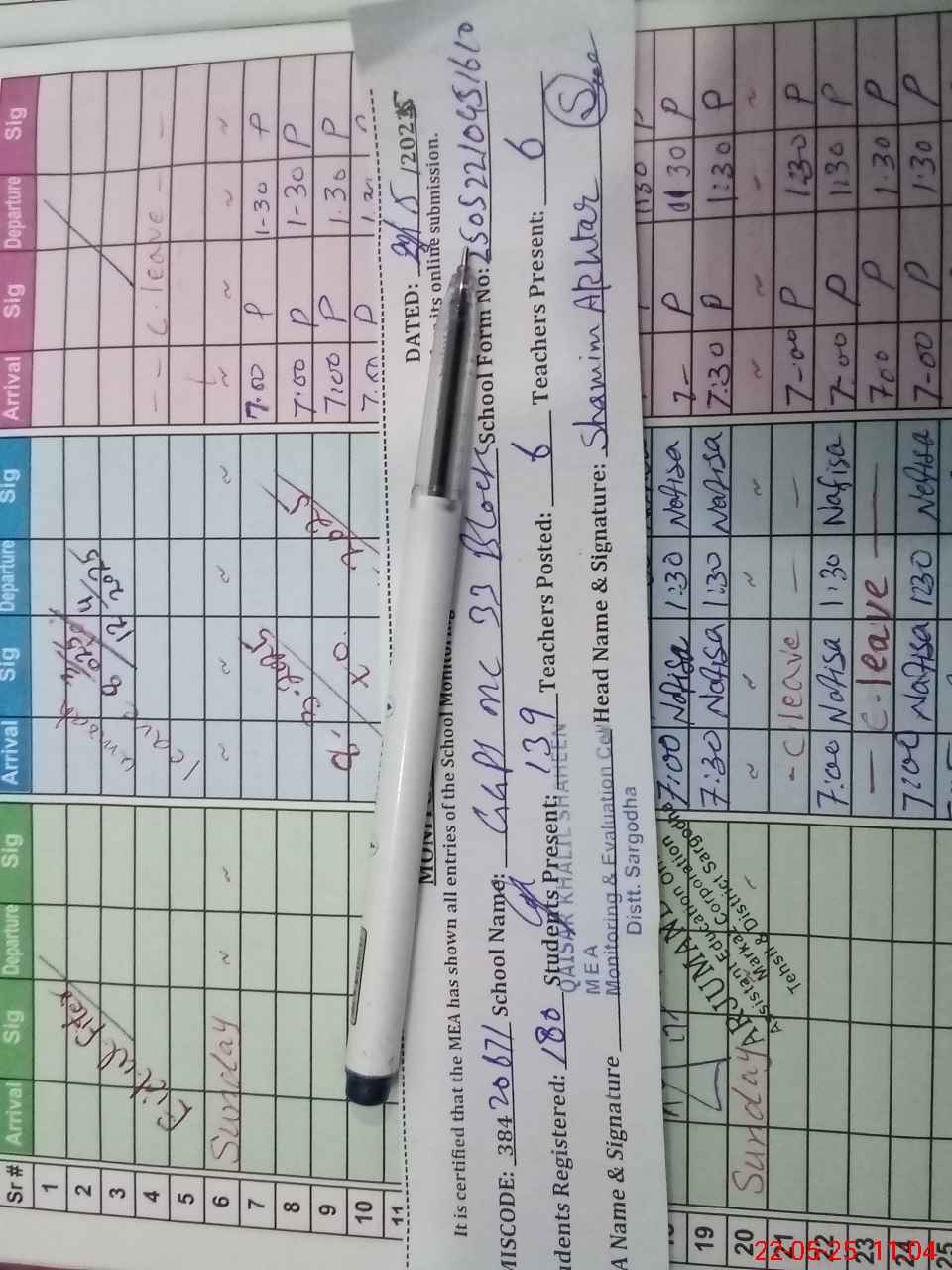 | Attendance Register | Head Teacher | MEA with School | Visit Proof |