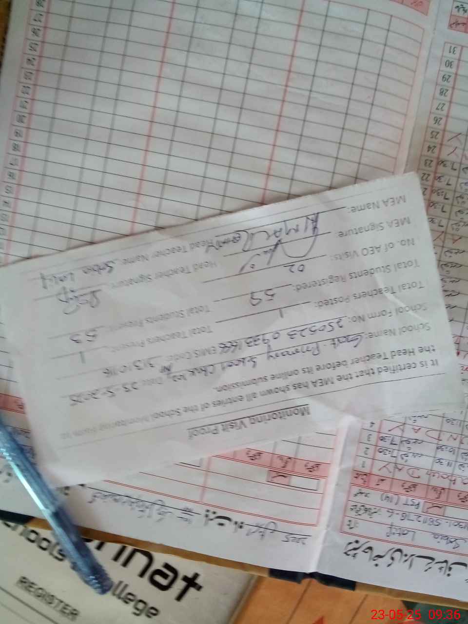 | Attendance Register | Head Teacher | MEA with School | Visit Proof |