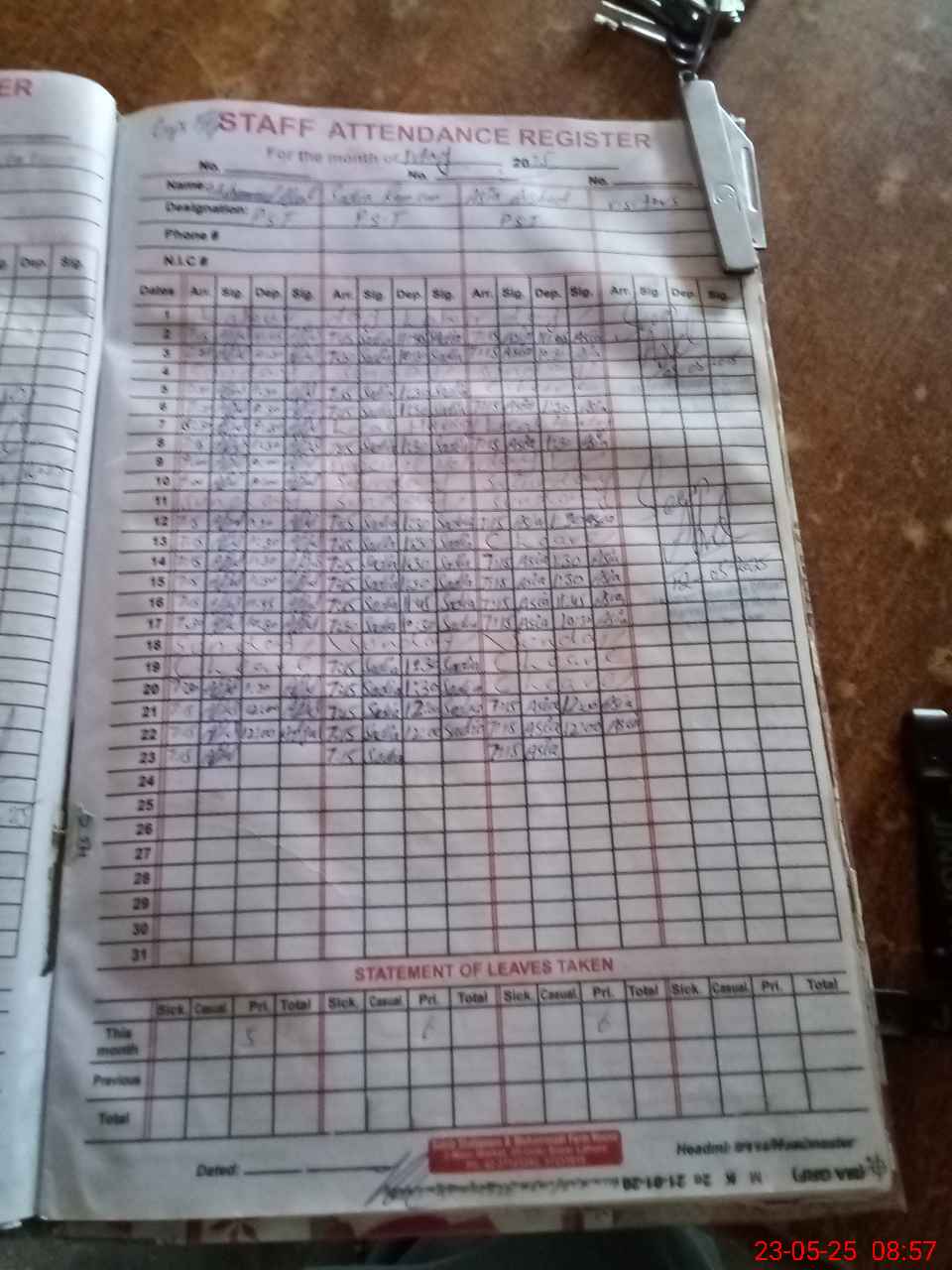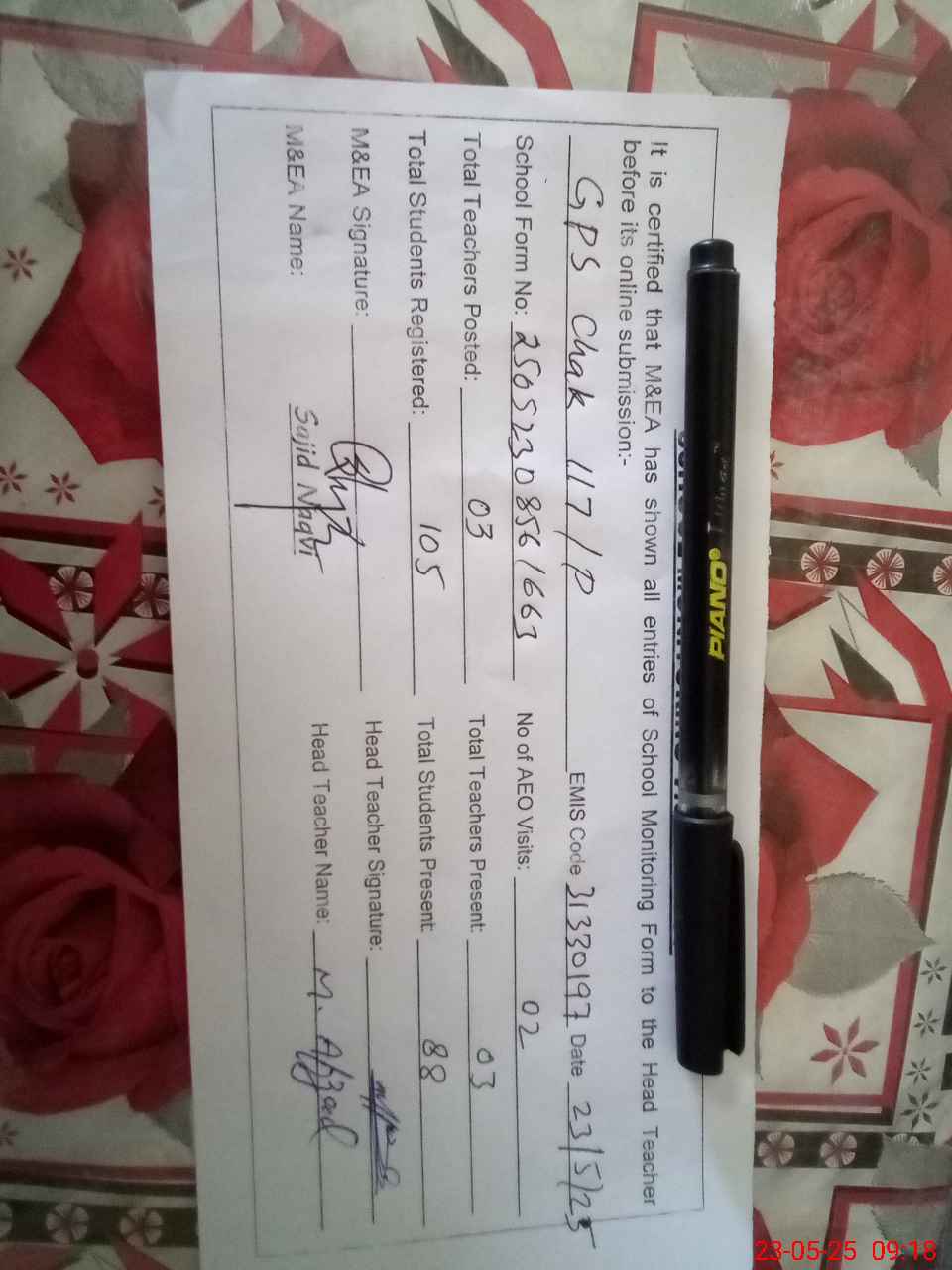| Name: M.AF**** Designation: (School Headmaster's/Headmistress's) PST Phone/Cell Number: 03**** |