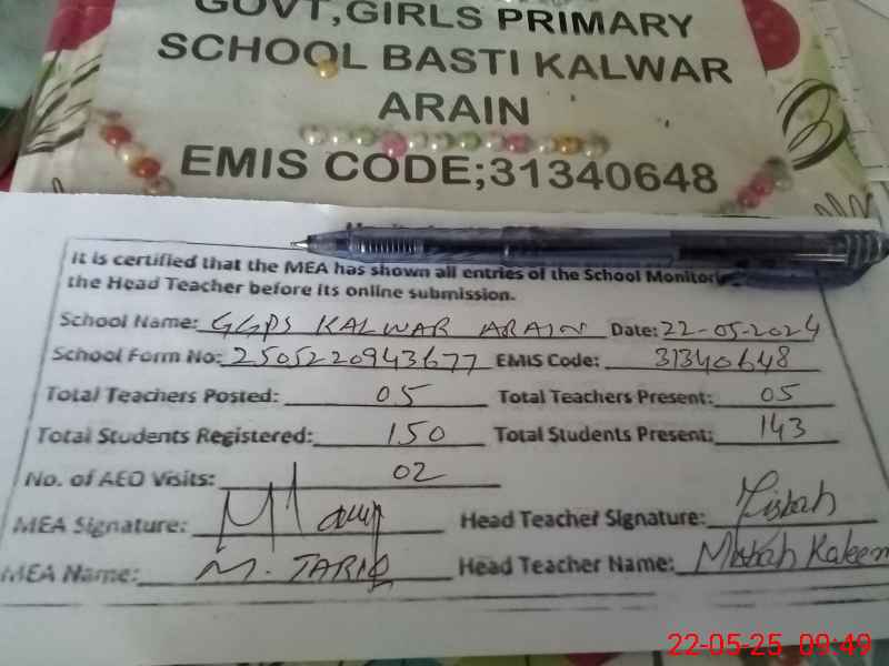 | EMIS Code: 31340648 | Name of School: GGPS KALWARA ARAIN | |||