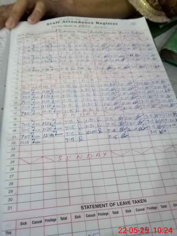 | CNIC | Full Name | Designation | R/C | Absence During Last Calender Month |