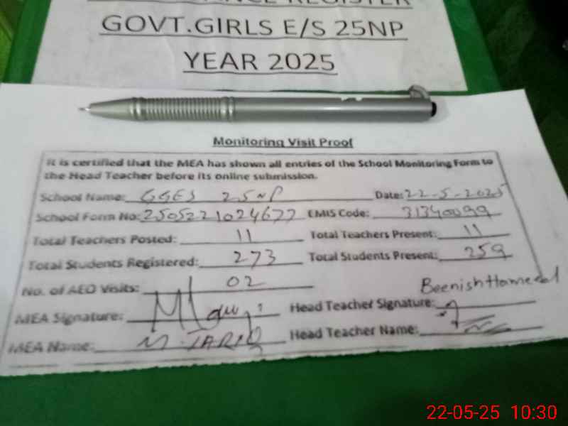 | EMIS Code: 31340099 | Name of School: GGES CHAK NO.25/NP | |||