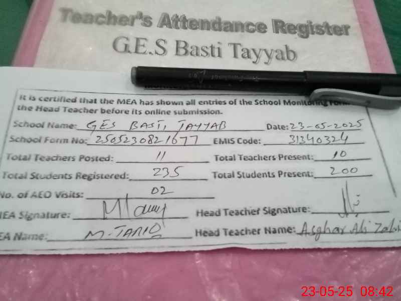 | EMIS Code: 31340324 | Name of School: GES BASTI TAYYAB | |||