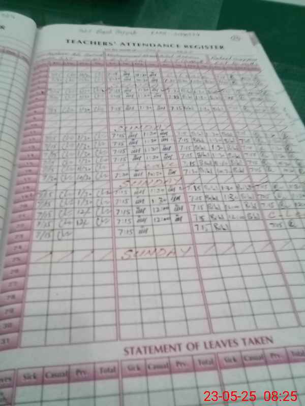 | 31**** | Si**** Su**** | Regular | 1 | 7 | 0 | 0 | 0 | 0 | 0 | 0 | 1 | Exam Duty | |