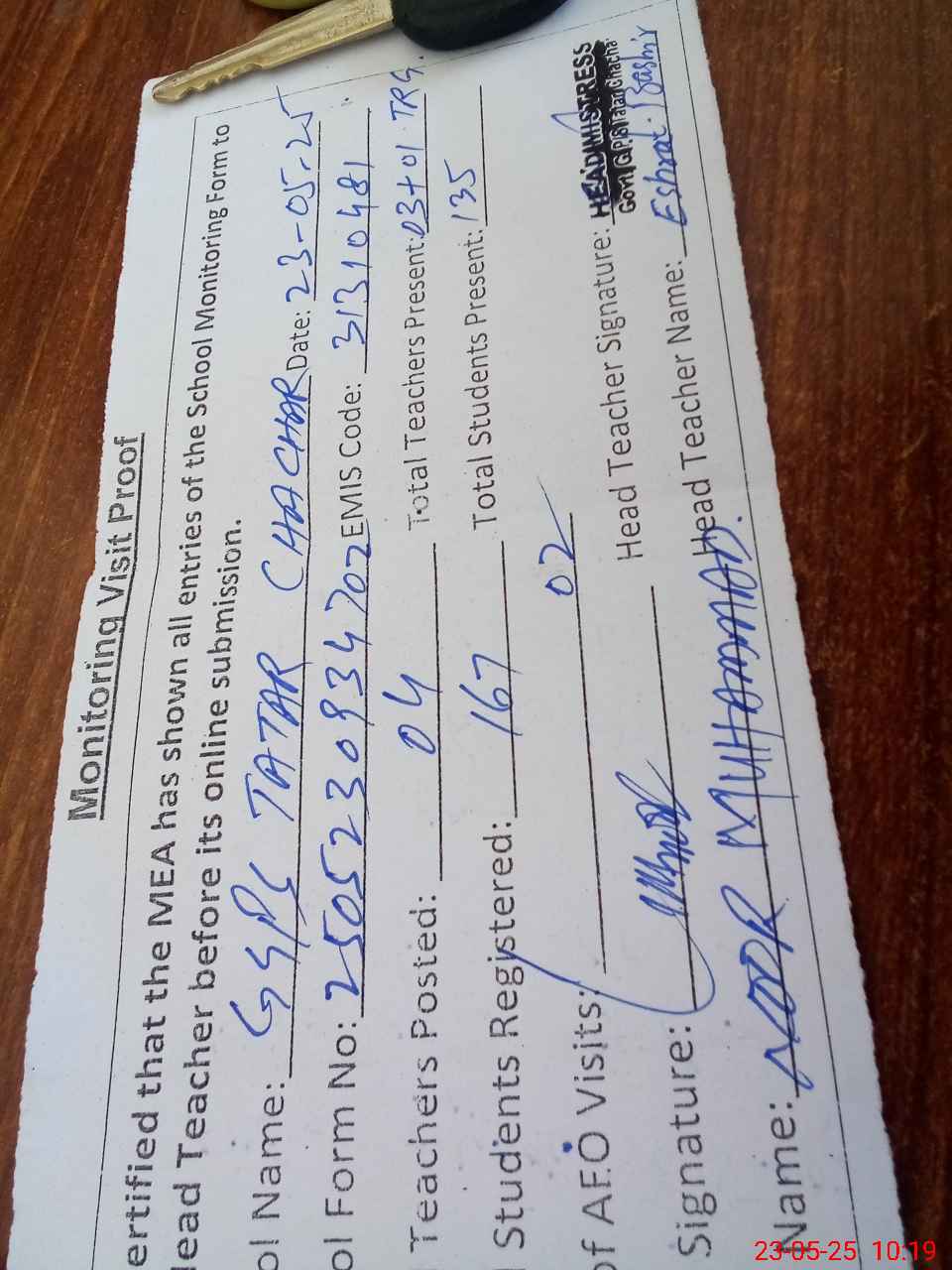 | EMIS Code: 31310481 | Name of School: GGPS TATAR CHACHAR | |||