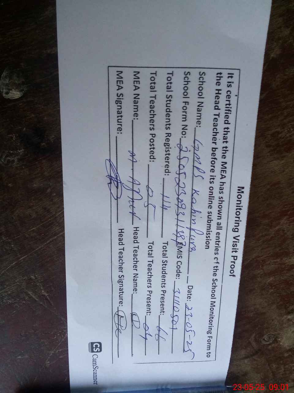| EMIS Code: 31110501 | Name of School: GMPS KAHIN PURA | |||