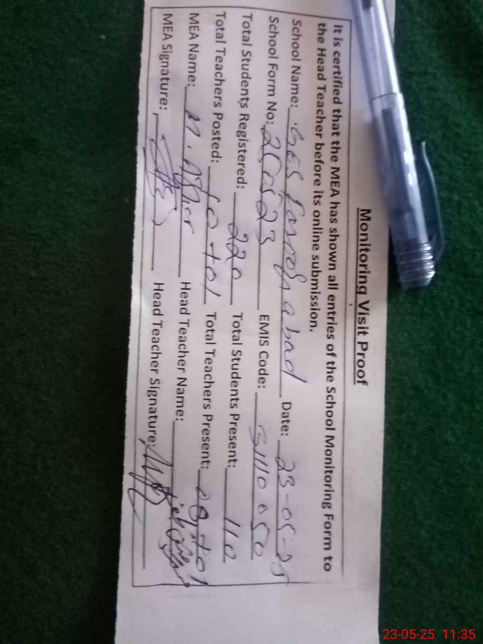 | Certified that this School was Inspected by the Undersigned MEA/DMO Today and the Information Stated Above is as Per Record. | |||||
