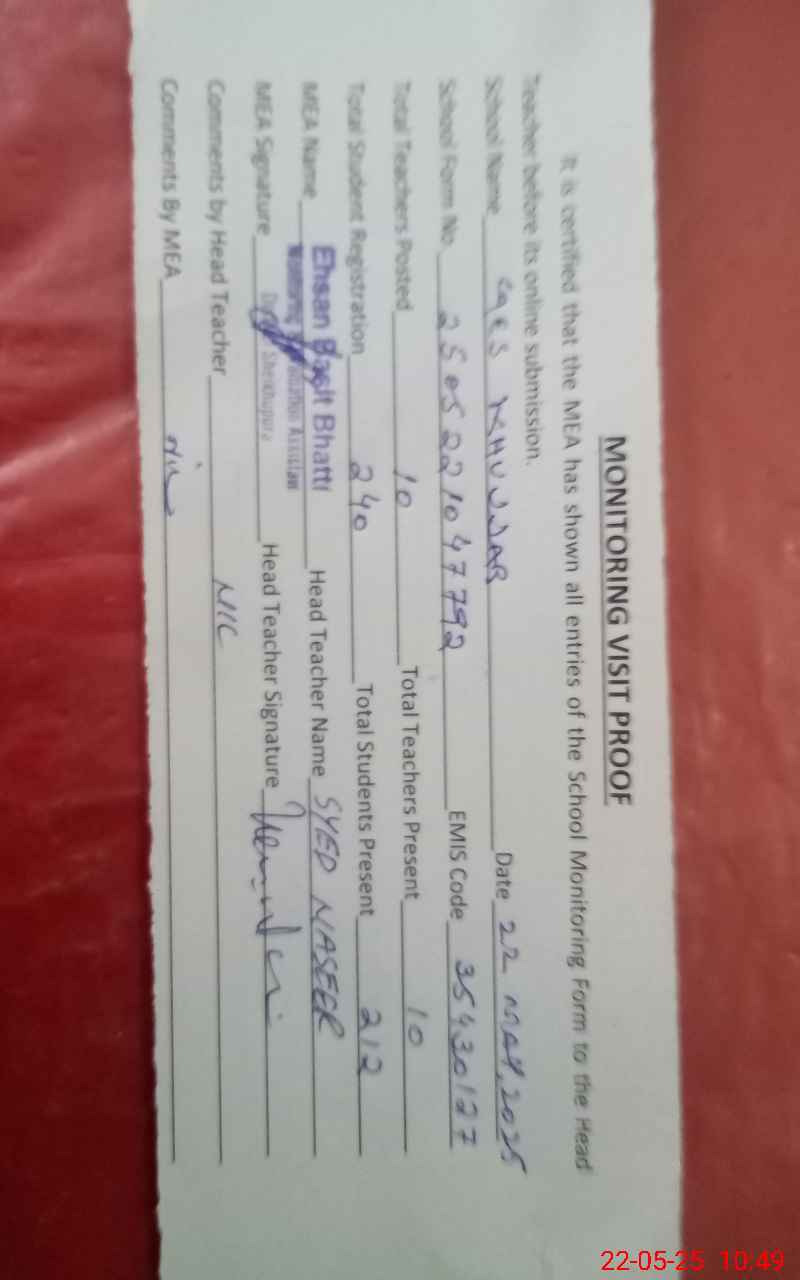 | EMIS Code: 35430127 | Name of School: GES KHUJJAR | |||