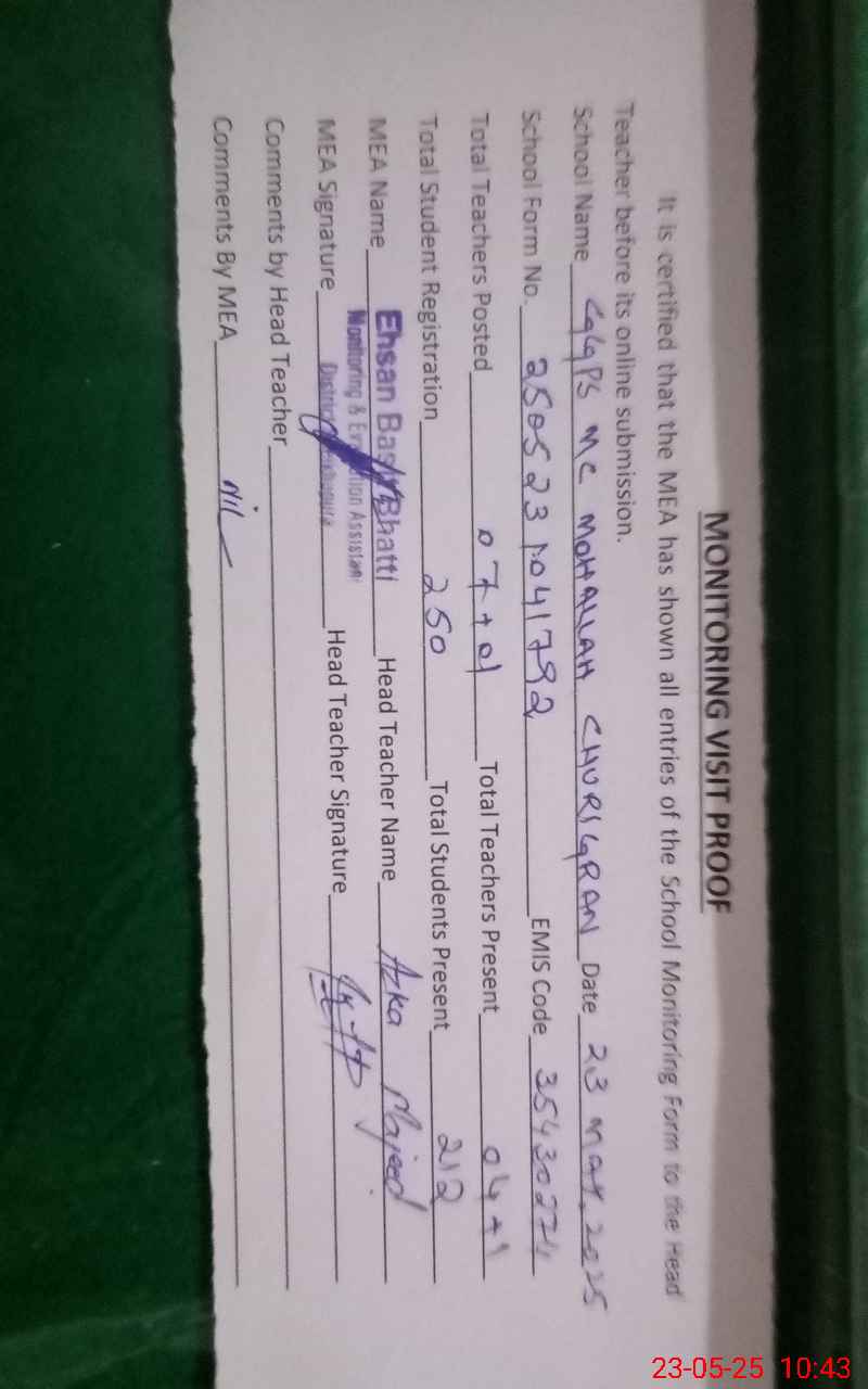| EMIS Code: 35430274 | Name of School: GGPS MC MOHALLAH CHURIGRAN | |||