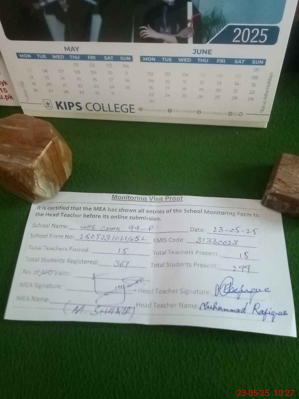 | Attendance Register | Head Teacher | MEA with School | Visit Proof |