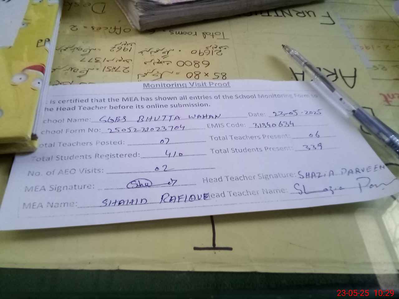 | EMIS Code: 31340634 | Name of School: GGES BHUTTA WAHAN | |||