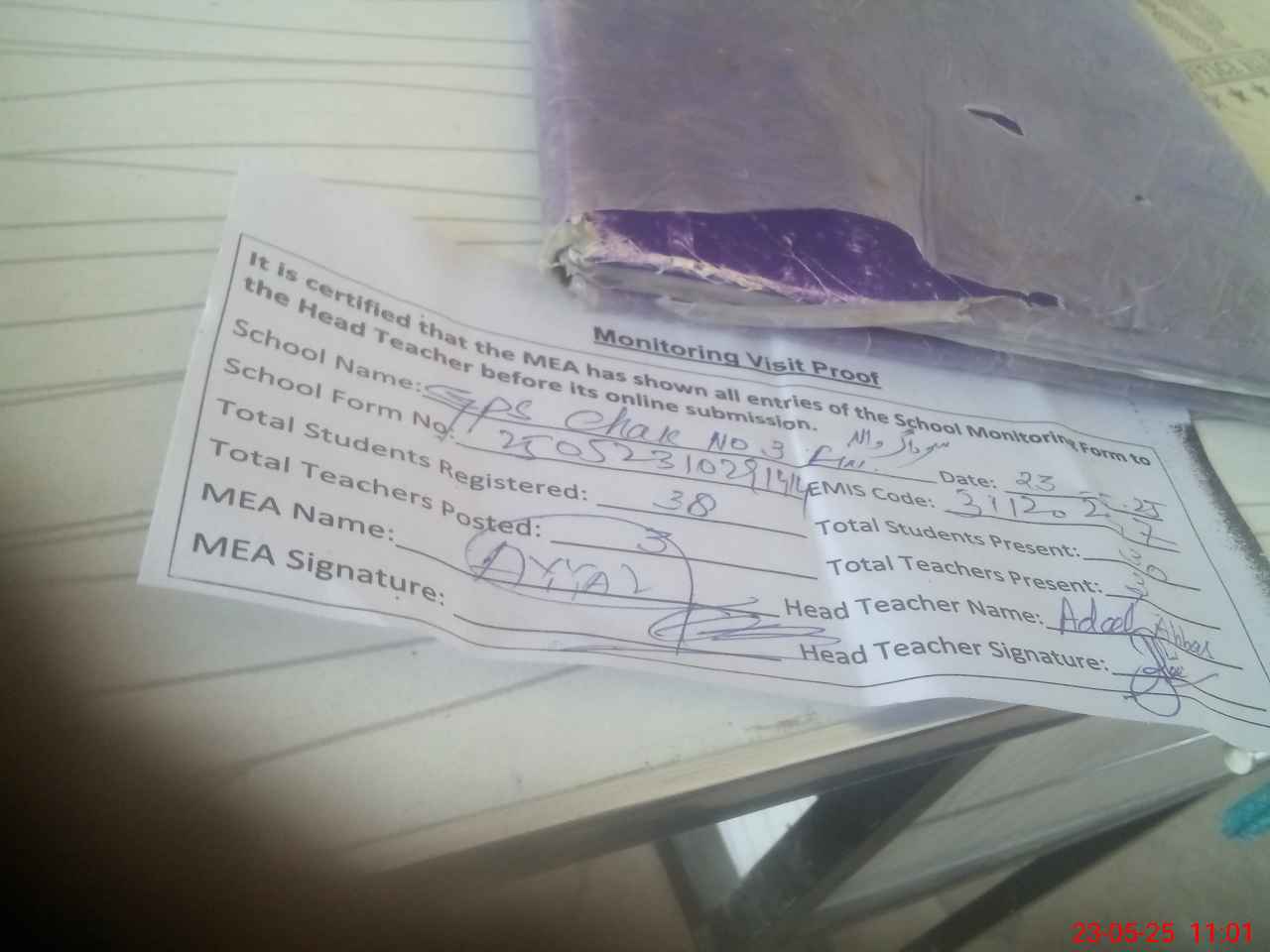 | EMIS Code: 31120247 | Name of School: GPS CHAK NO. 3/FW SUDAGAR WALA | |||
