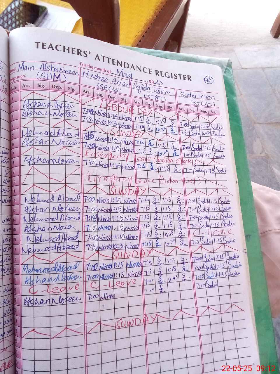 | Monitoring Date: 22-05-2025 | Start Time: 22-05-2025 08:49 AM | End Time: 22-05-2025 09:14 AM | Name of MEA: Ma**** UlHa**** | |