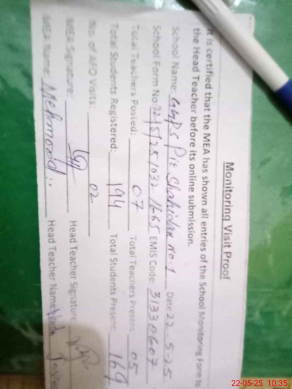 | EMIS Code: 31330607 | Name of School: GGPS PIR SHAHIDAN NO.1 | |||