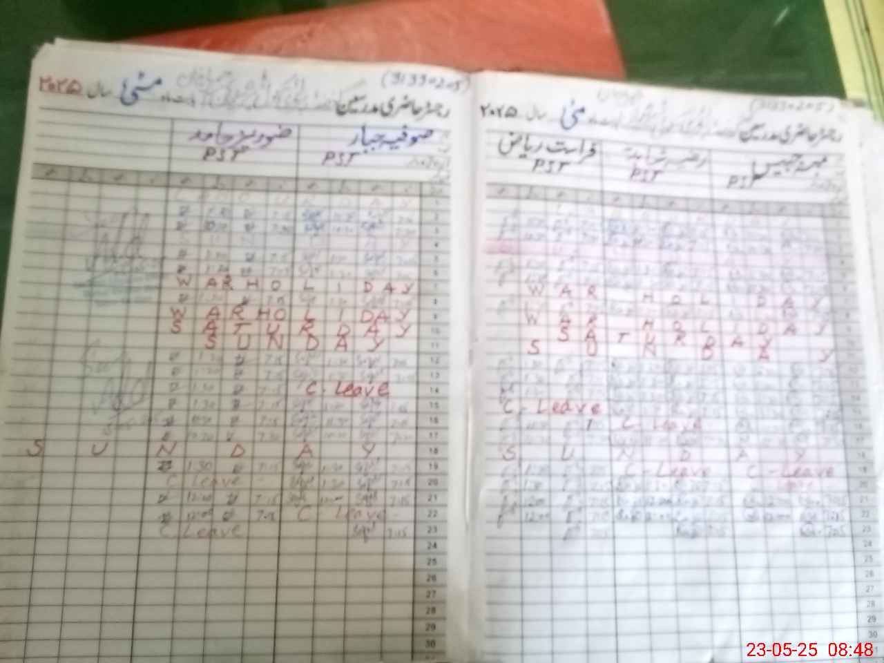 | CNIC | Full Name | Designation | R/C | Absence During Last Calender Month |