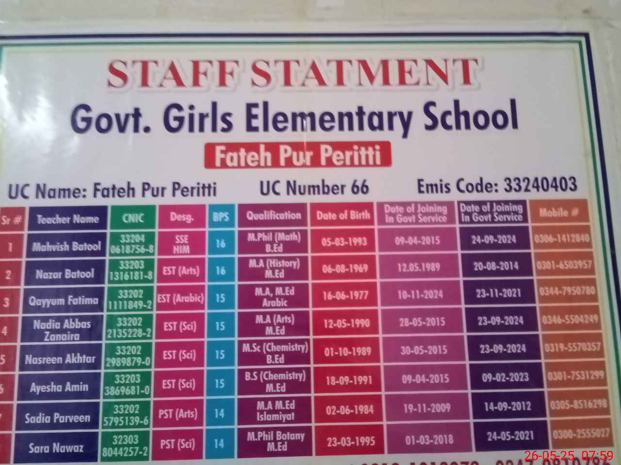 | EMIS Code: 33240403 | Name of School: GGES FATEH PUR PERITTI | |||
