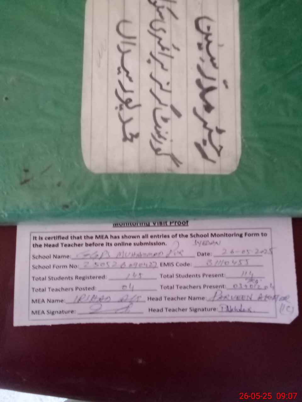 | EMIS Code: 31110455 | Name of School: GGPS MUHAMMAD PUR SYEDAN | |||