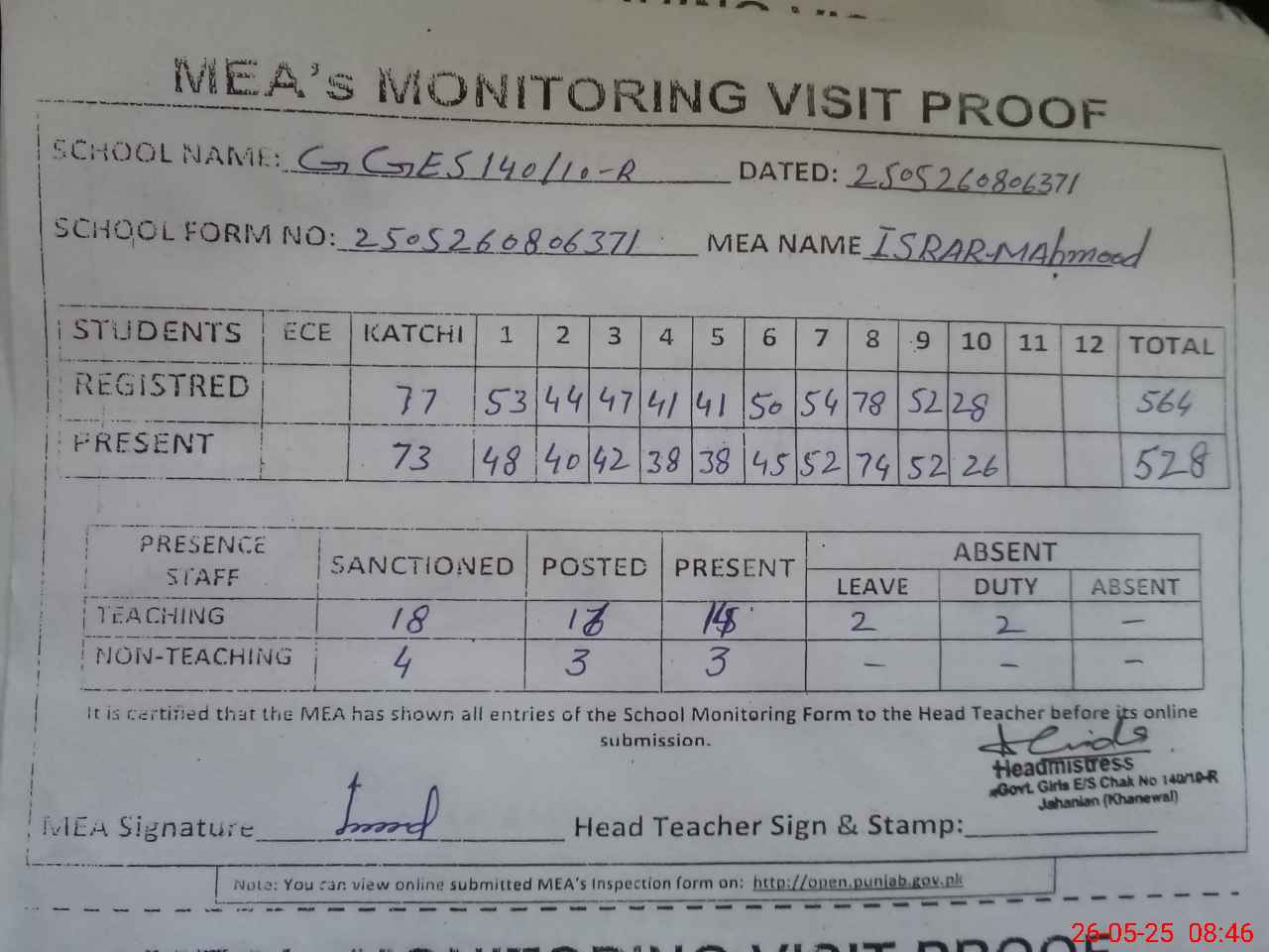 | EMIS Code: 36440132 | Name of School: GGES 140/10-R, JAHANIAN | |||