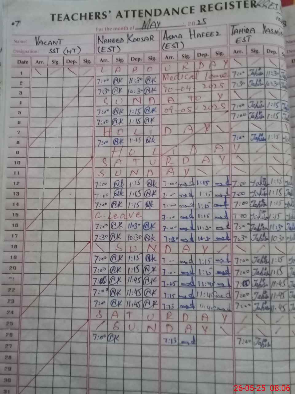 | 36**** | Sa**** Ja**** | PST | Regular | 0 | 0 | 0 | 0 | 0 | 0 | 0 | 0 | 0 | Exam Duty |