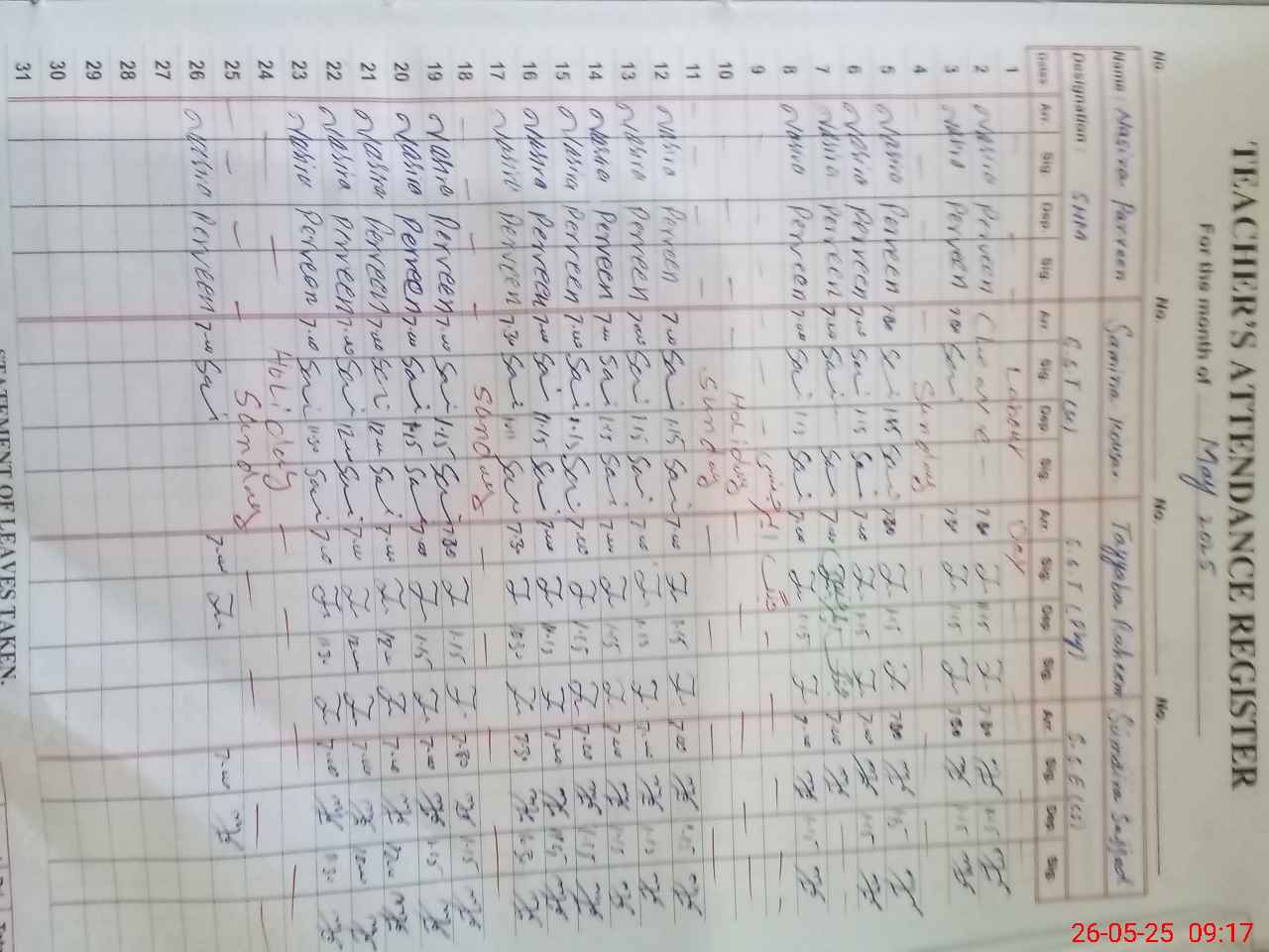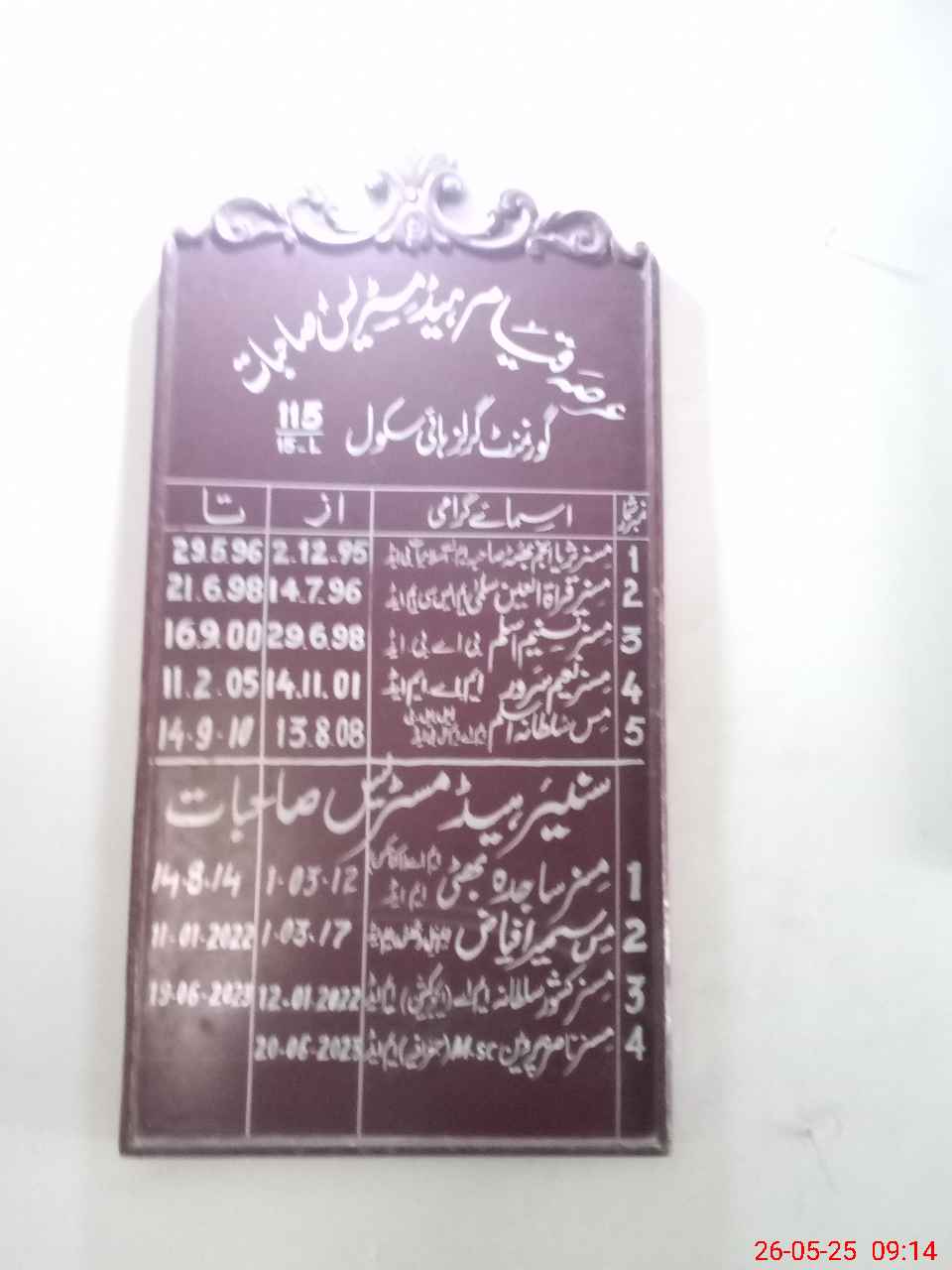 | Name: NA**** PE**** Designation: (School Headmaster's/Headmistress's) SR HEADMISTRESS Phone/Cell Number: 03**** |