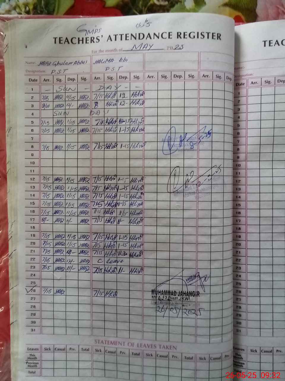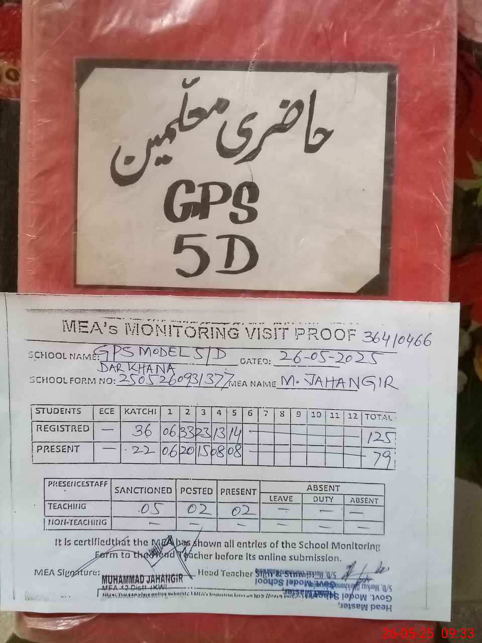 | Attendance Register | Head Teacher | MEA with School | Visit Proof |