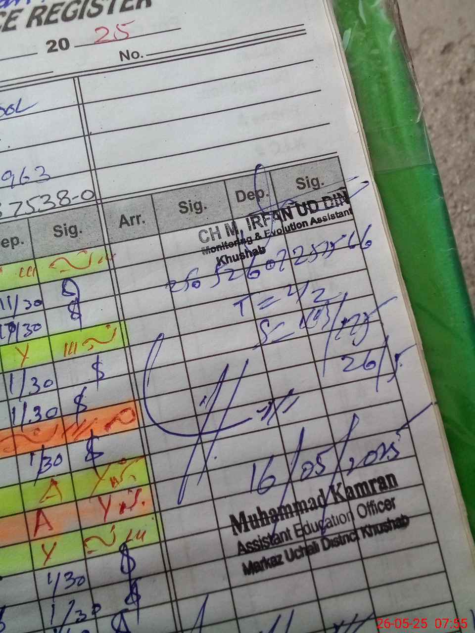 | Monitoring Date: 26-05-2025 | Start Time: 26-05-2025 07:25 AM | End Time: 26-05-2025 07:55 AM | Name of MEA: MU**** IR**** UDDI**** | |