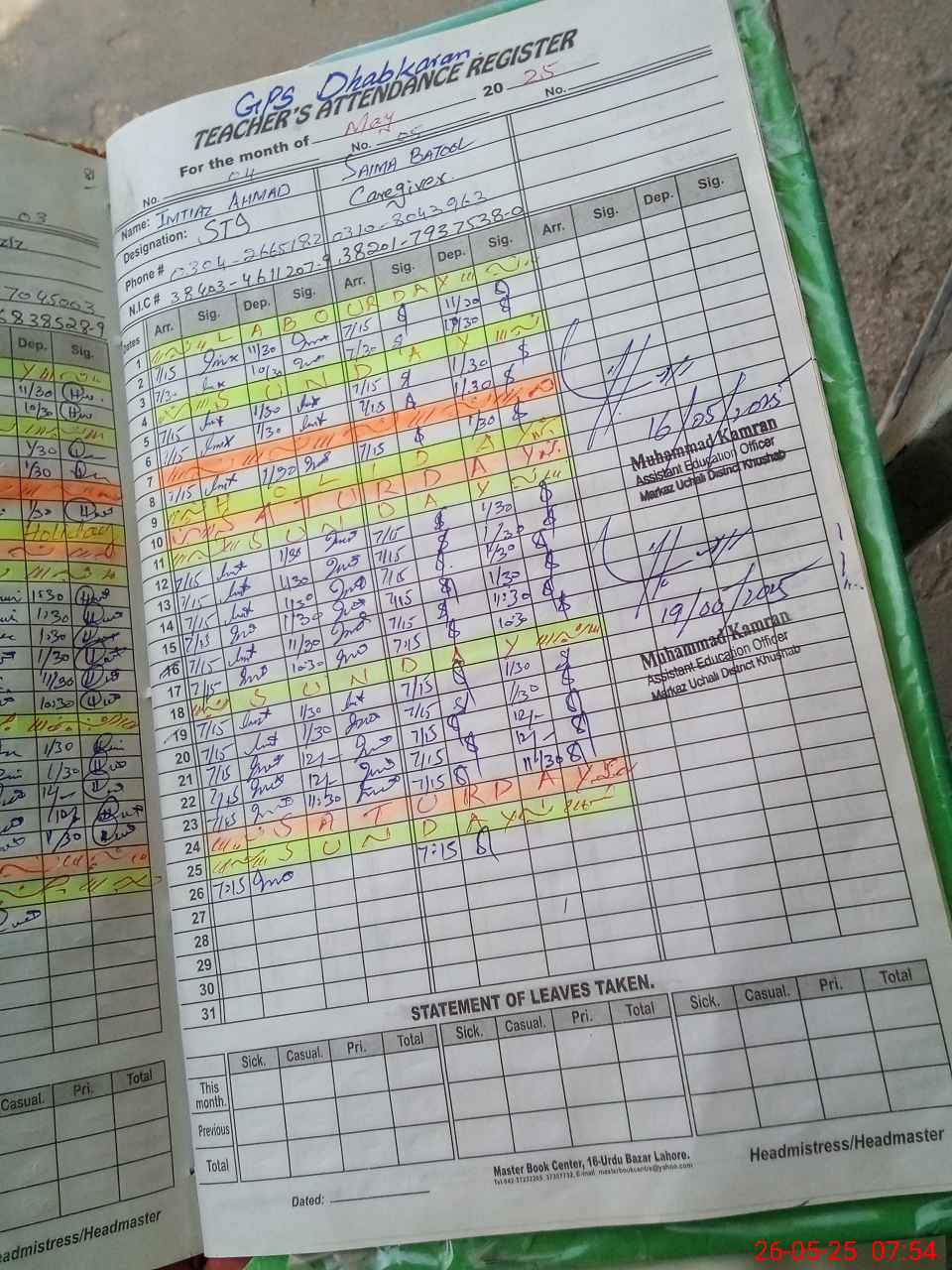 | Name: Sa**** Az**** Designation: (School Headmaster's/Headmistress's) Pst Phone/Cell Number: 03**** |