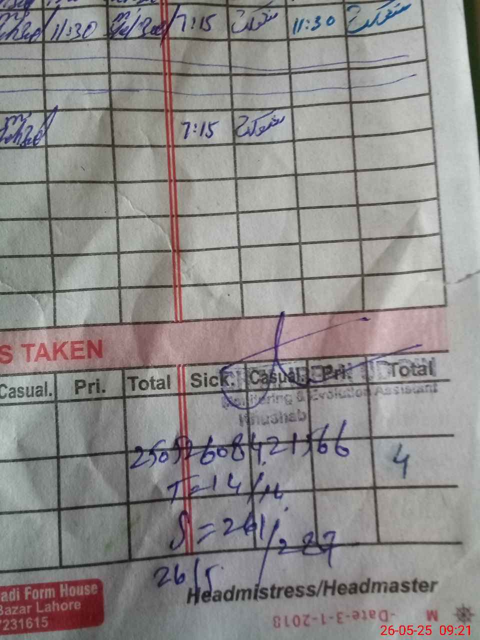 | Attendance Register | Head Teacher | MEA with School | Visit Proof |