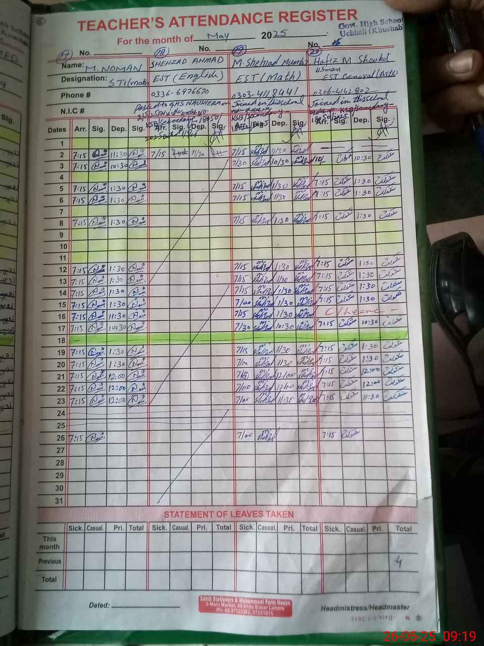 | Name: Am**** Hu**** Designation: (School Headmaster's/Headmistress's) HEADMASTER Phone/Cell Number: 03**** |