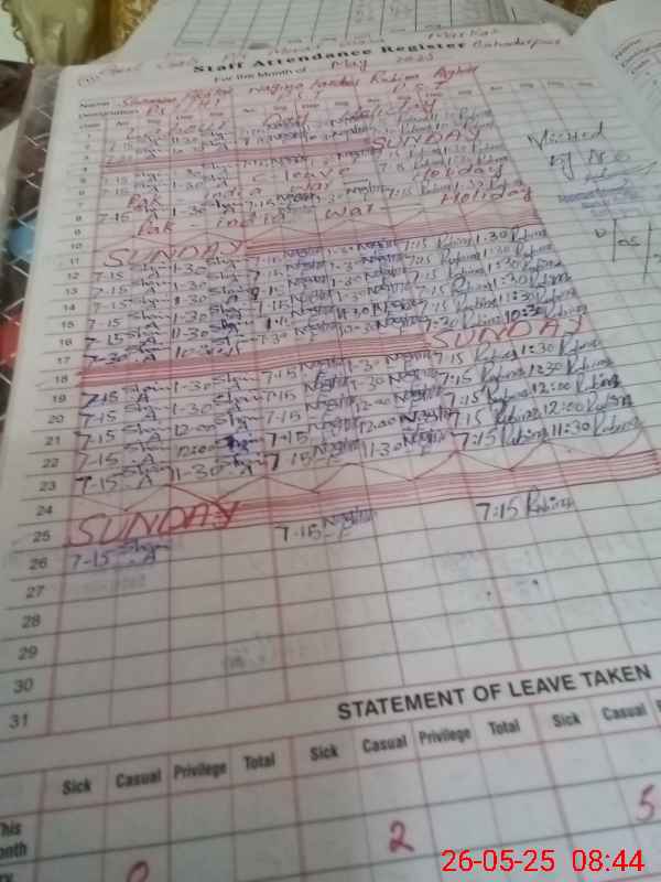 | CNIC | Full Name | Designation | R/C | Absence During Last Calender Month |
