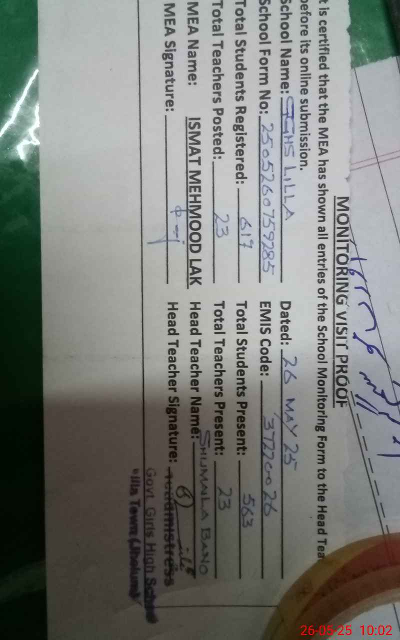 | EMIS Code: 37220026 | Name of School: GGHS LILLA TOWN | |||