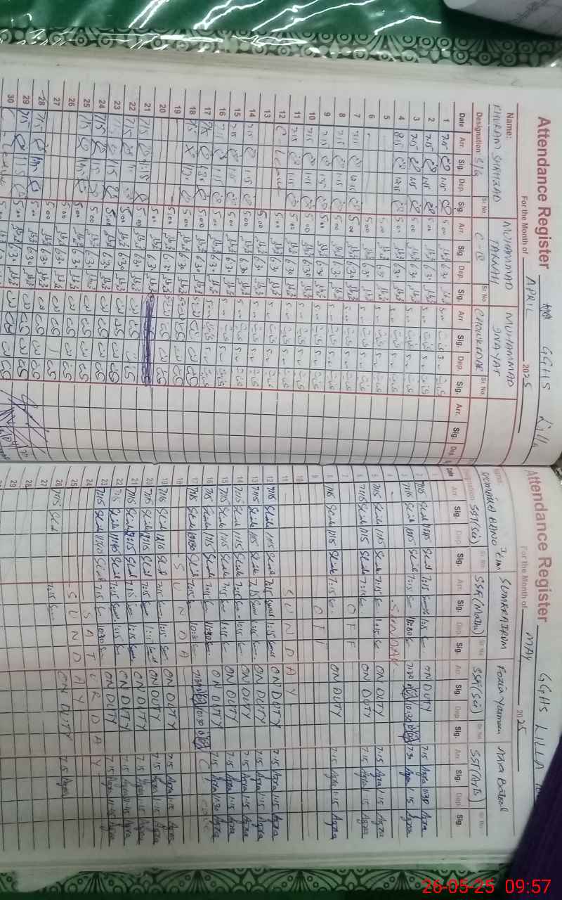 | 37**** | Na**** Sh**** | 1 | 2 | 3 | 0 | 0 | 0 | 0 | 0 | 0 | 2 | Exam Duty | |
