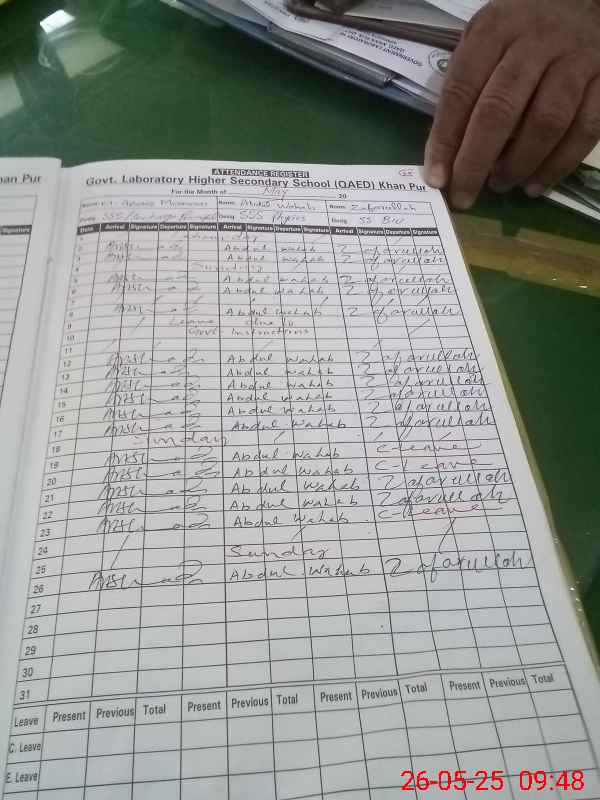| CNIC | Full Name | Designation | R/C | Absence During Last Calender Month |
