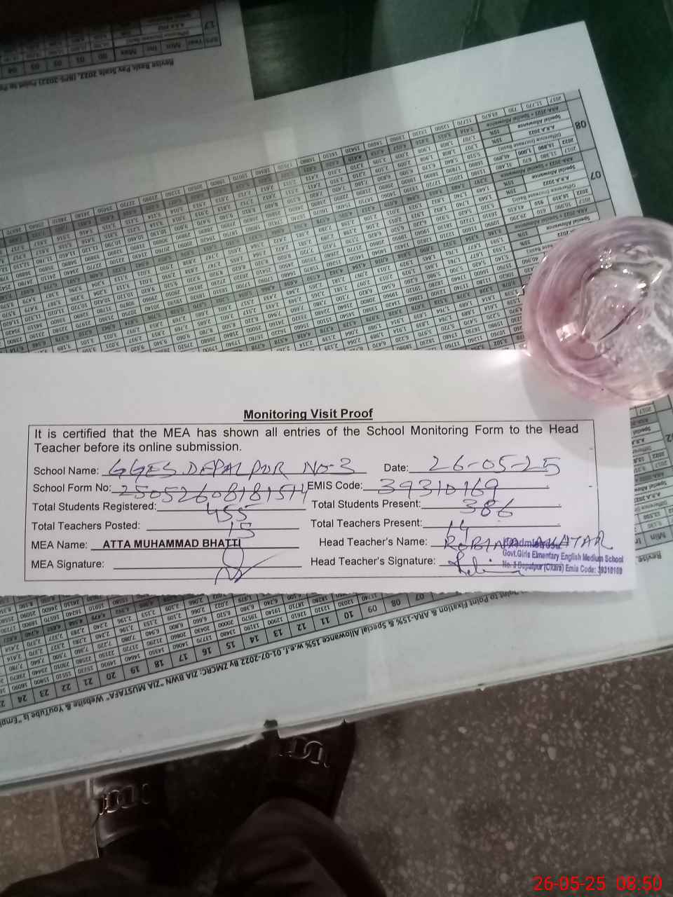 | EMIS Code: 39310169 | Name of School: GGES DEPALPUR NO 3 | |||