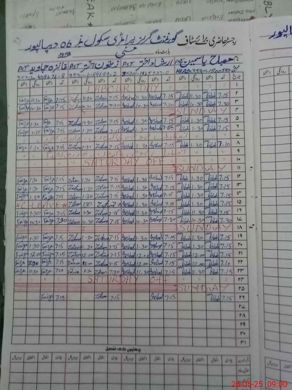 | CNIC | Full Name | Designation | R/C | Absence During Last Calender Month |