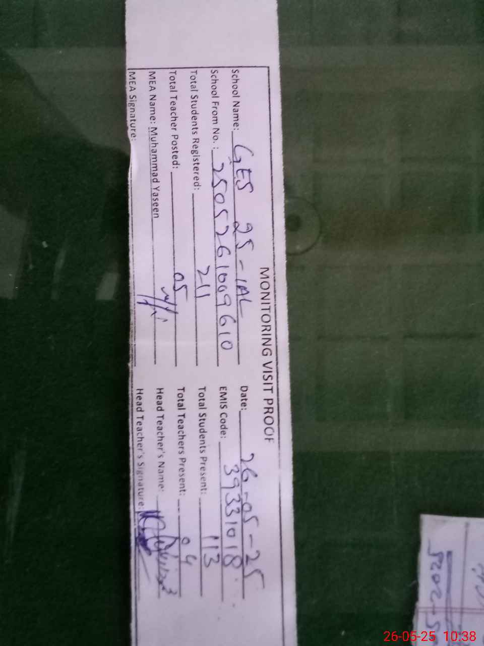 | EMIS Code: 39331018 | Name of School: GES CHAK 25/1-AL | |||