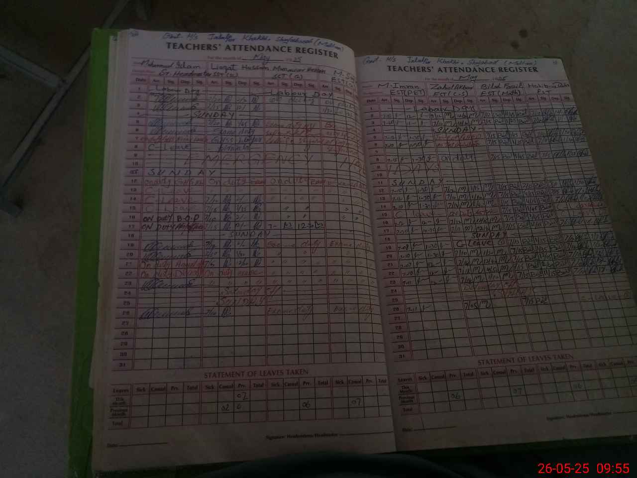 | 36**** | Mu**** Sa**** | EST | Regular | 0 | 0 | 0 | 0 | 0 | 0 | 0 | 0 | 0 | Exam Duty |