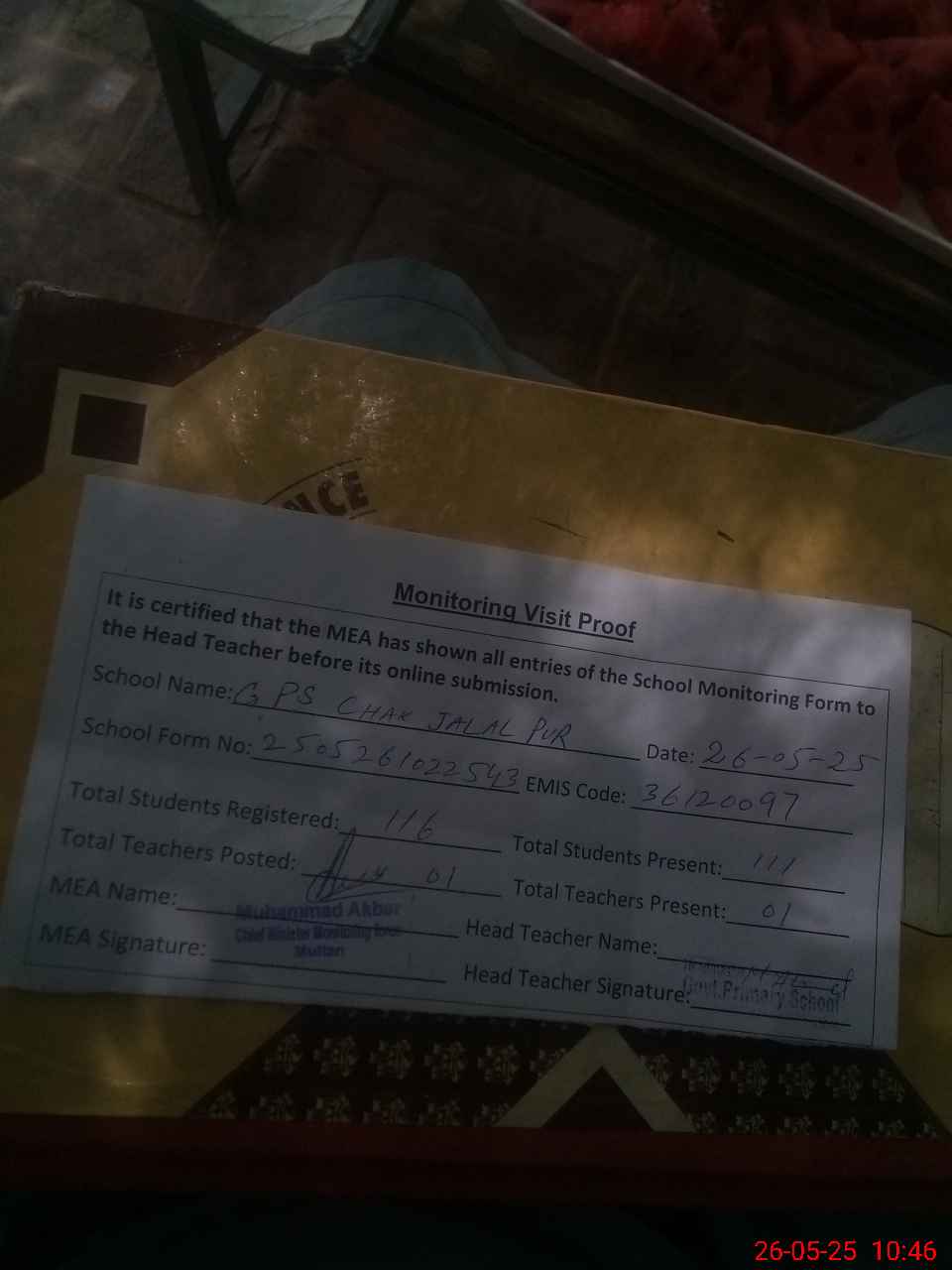 | EMIS Code: 36120097 | Name of School: GPS CHAK JALALPUR P/O JALAL PUR KHAKI | |||