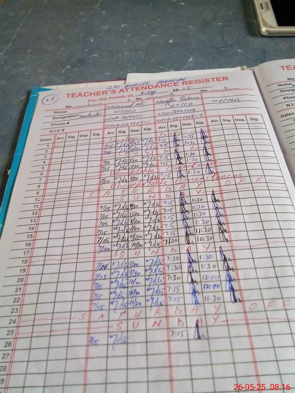 | Name: Mu**** Al**** Designation: (School Headmaster's/Headmistress's) SST Phone/Cell Number: 03**** |