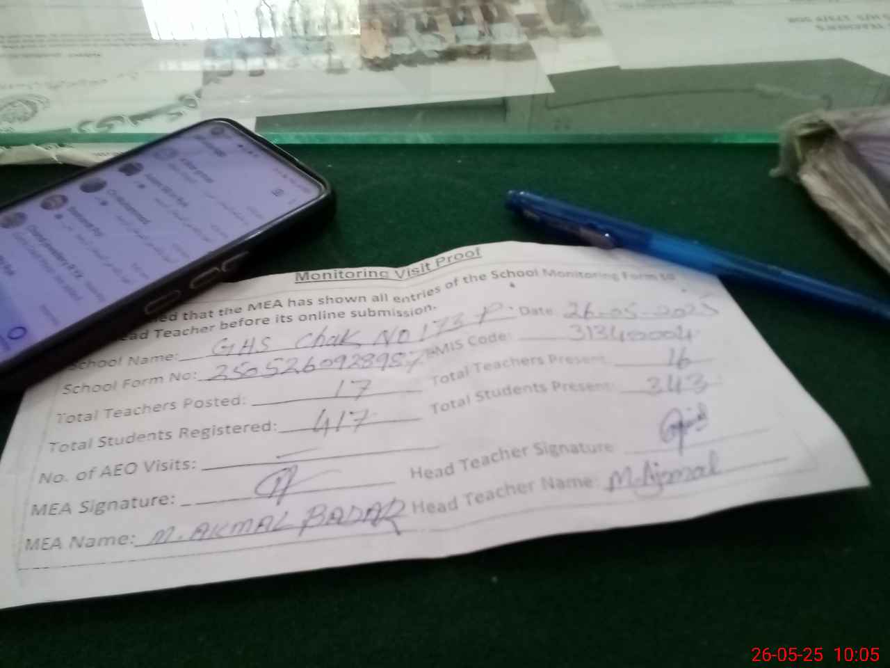 | EMIS Code: 31340004 | Name of School: GHS CHAK 173/P | |||