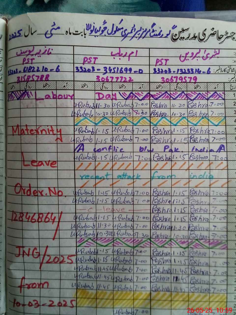 | Leave | Duty | Absent | Maternity | Medical | Ex- Pak |