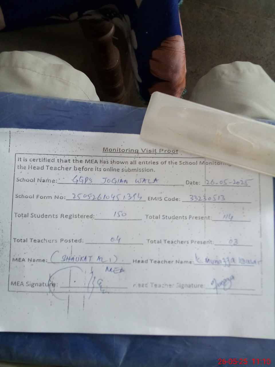 | Attendance Register | Head Teacher | MEA with School | Visit Proof |