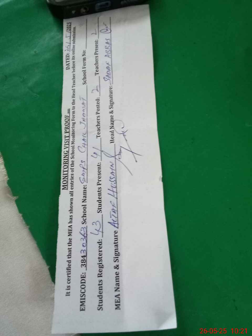 | Certified that this School was Inspected by the Undersigned MEA/DMO Today and the Information Stated Above is as Per Record. | |||||