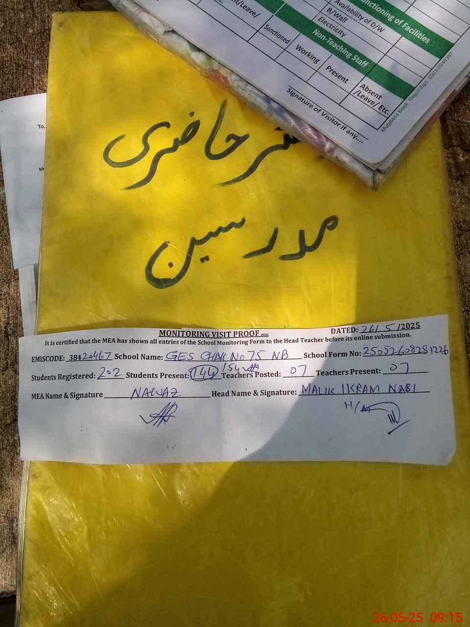 | Attendance Register | Head Teacher | MEA with School | Visit Proof |