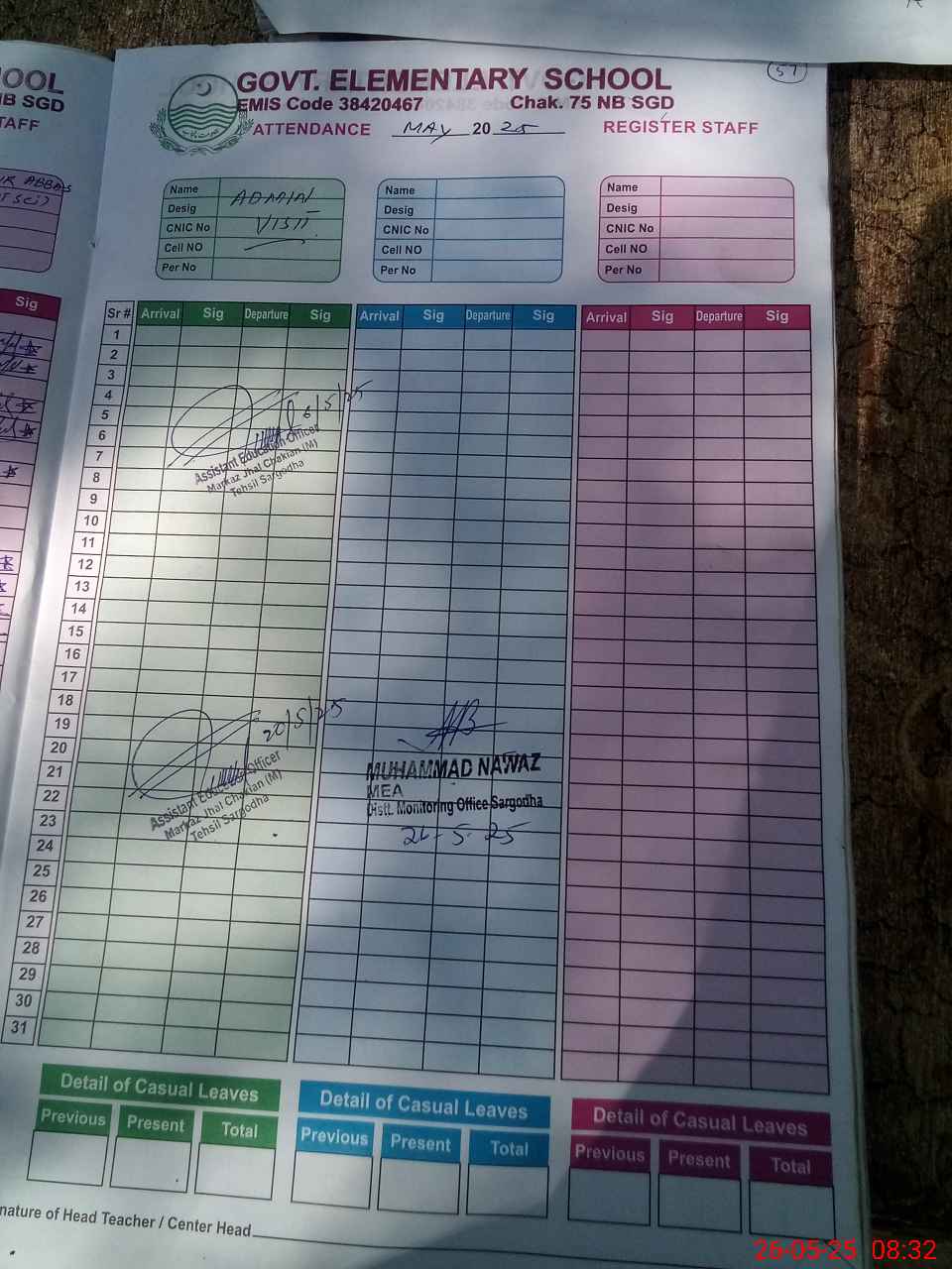 | CNIC | Full Name | Designation | R/C | Absence during last cal. month |
